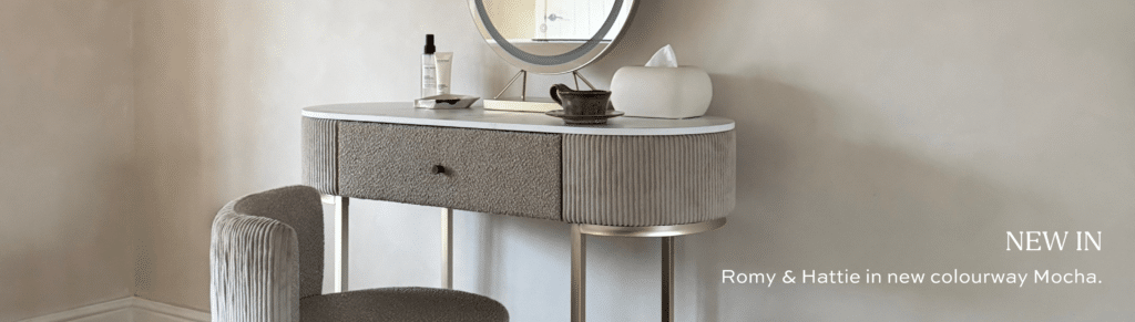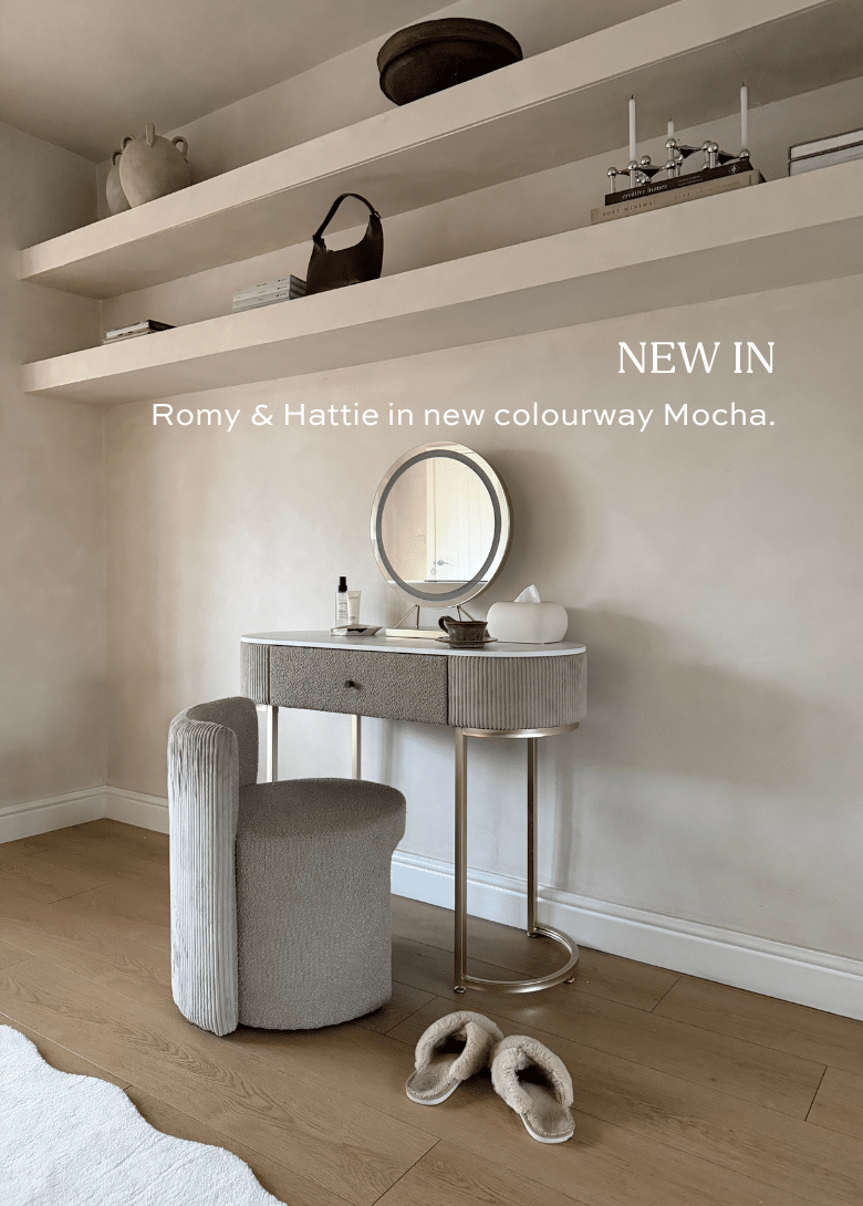 Imogen Mocha Dressing Table with Maisie LED Mirror & Hailey Bouclé Storage Stool
