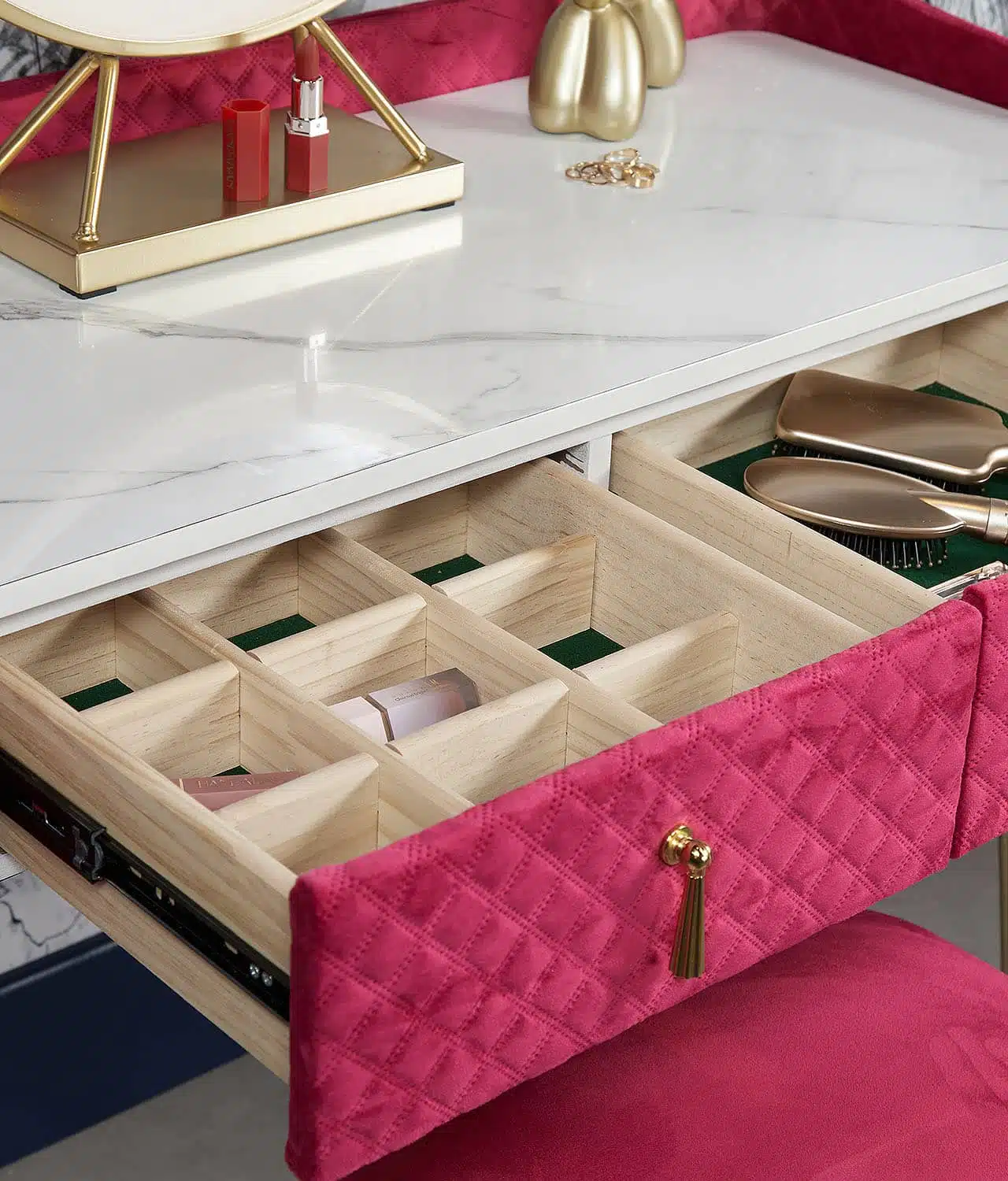 Tokyo Glow Raspberry Velvet Dressing Table with Velvet Stool
