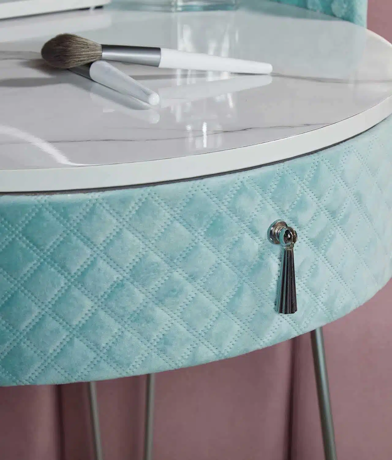 French Riviera Baby Blue Velvet Dressing Table with Velvet Stool