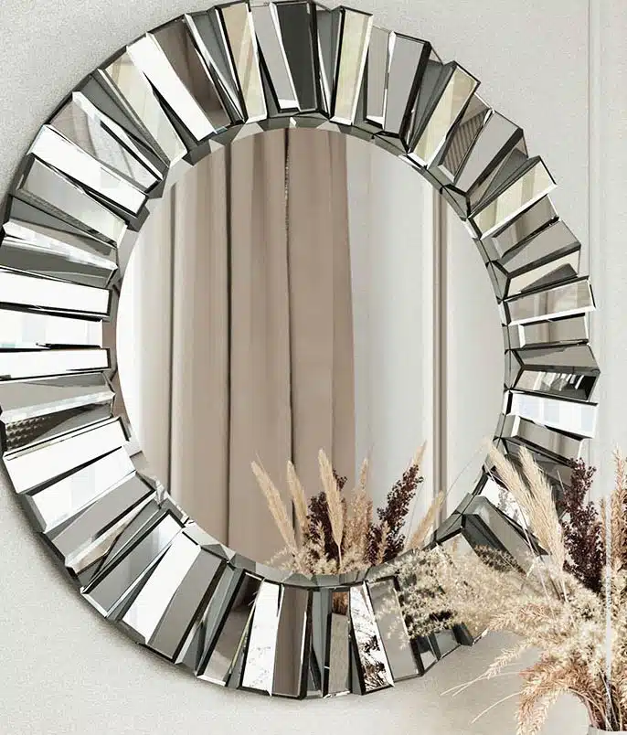 SALE Knightsbridge Silver Round Mirror and Console 2 Piece Set