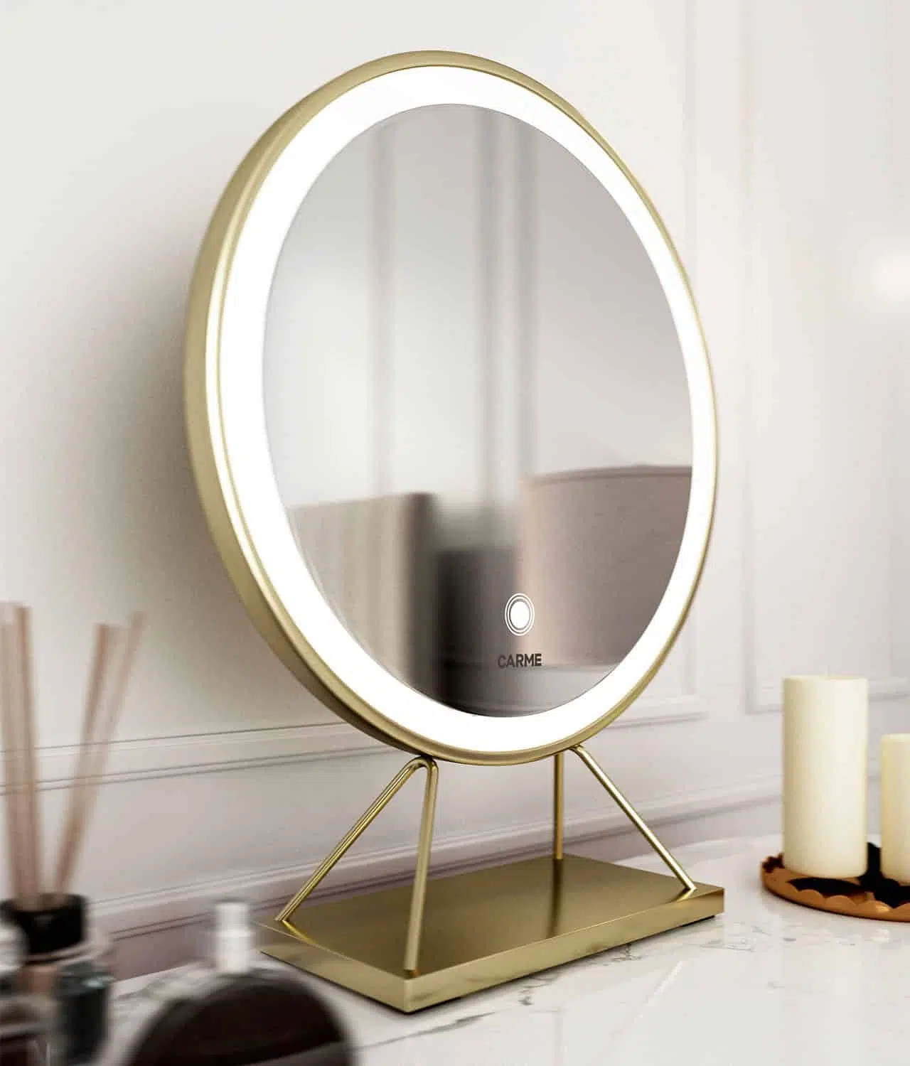 Belle Medium Gold Frame Touch Sensor LED Makeup Mirror with Lights