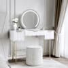 Lara White Dressing Table with Elsie LED Mirror (White Base) & Hailey Bouclé Storage Stool