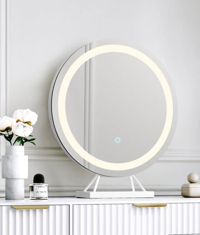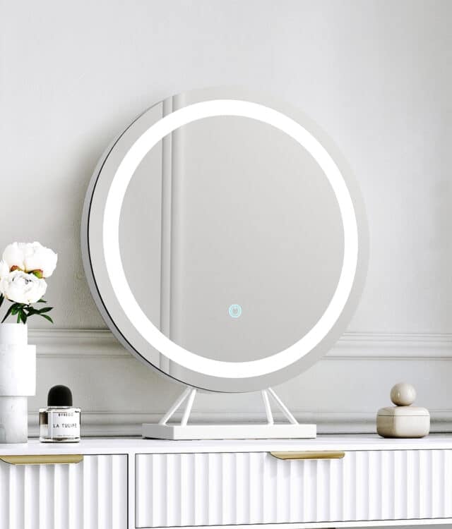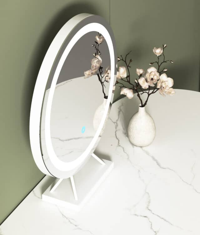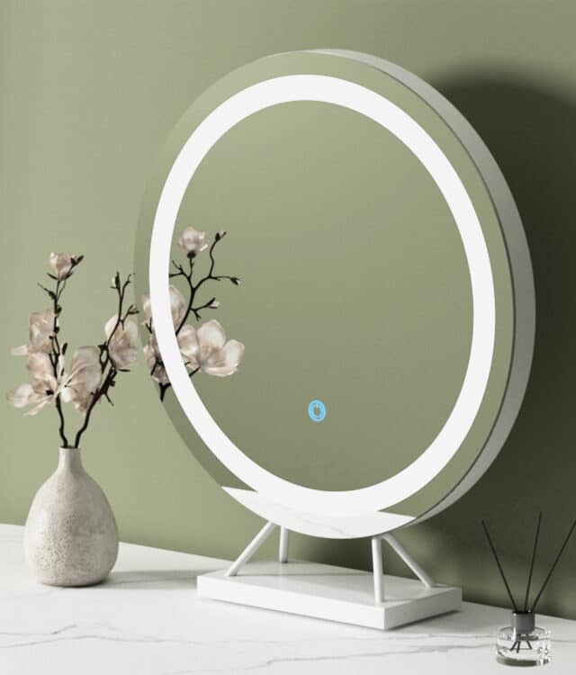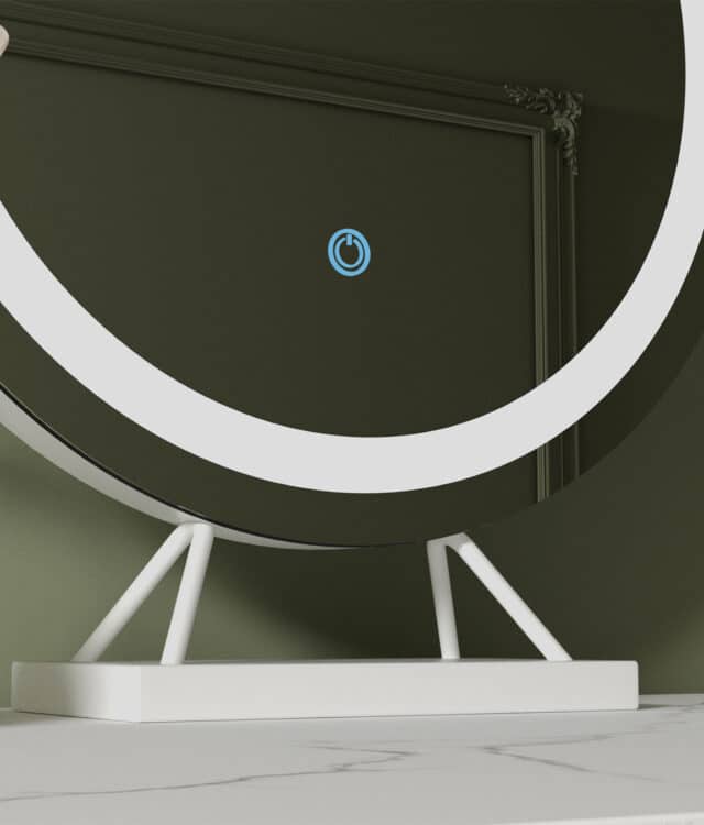 - Circular table top mirror with touch sensor LED light strip.